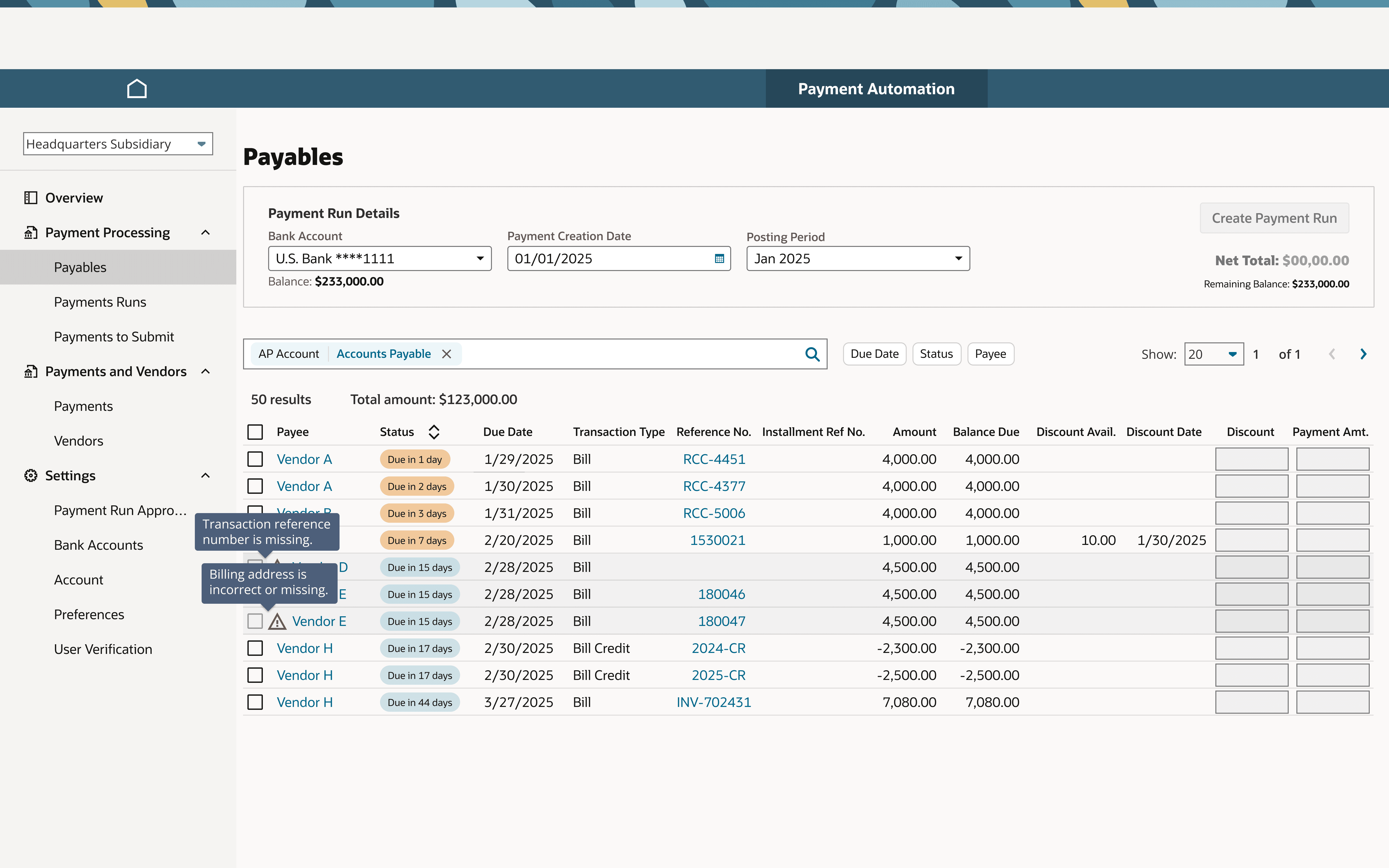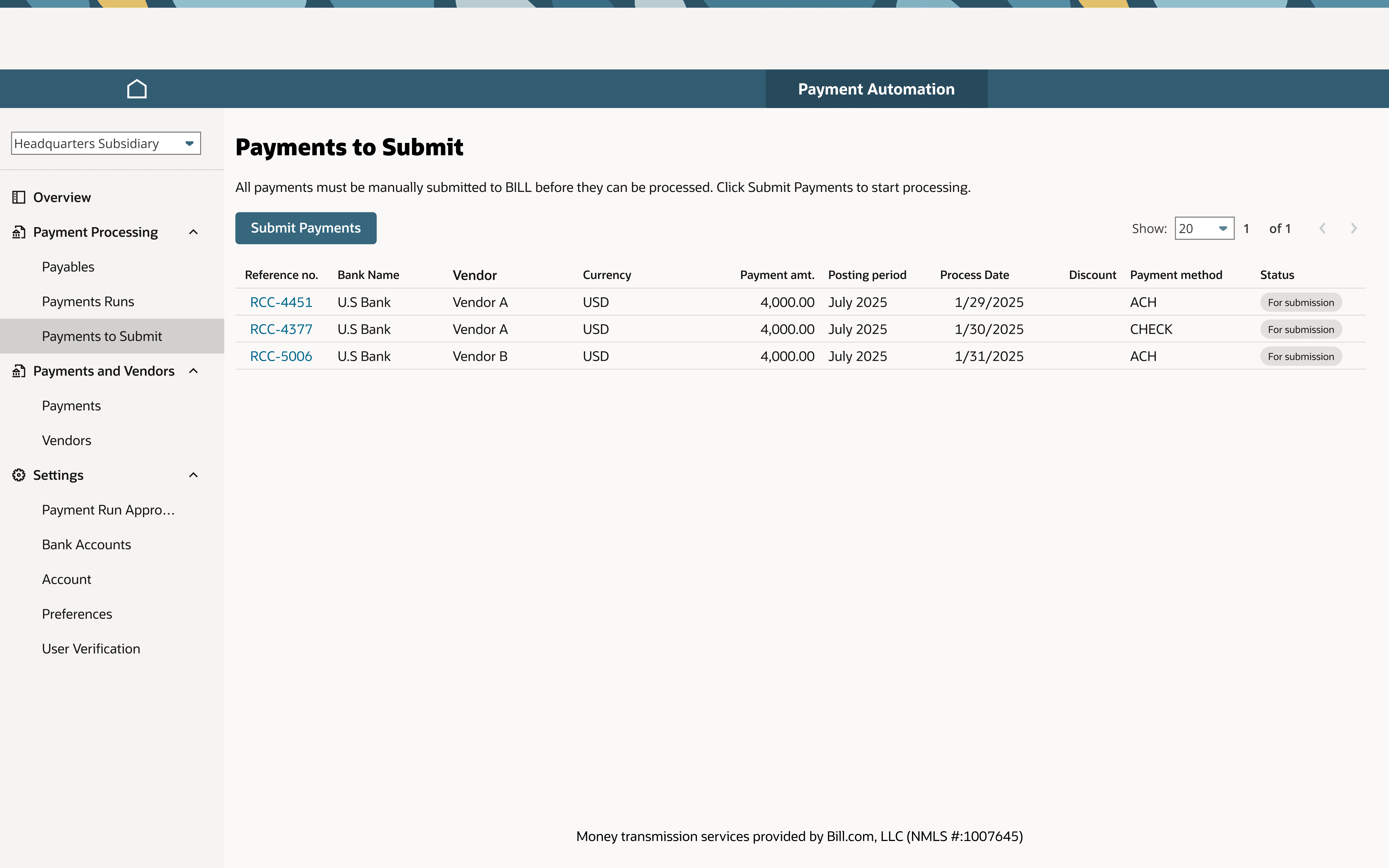 Managing AP workflow isn't always linear, and there are many factors that may affect the payments process, such as bank account verifications and connections.